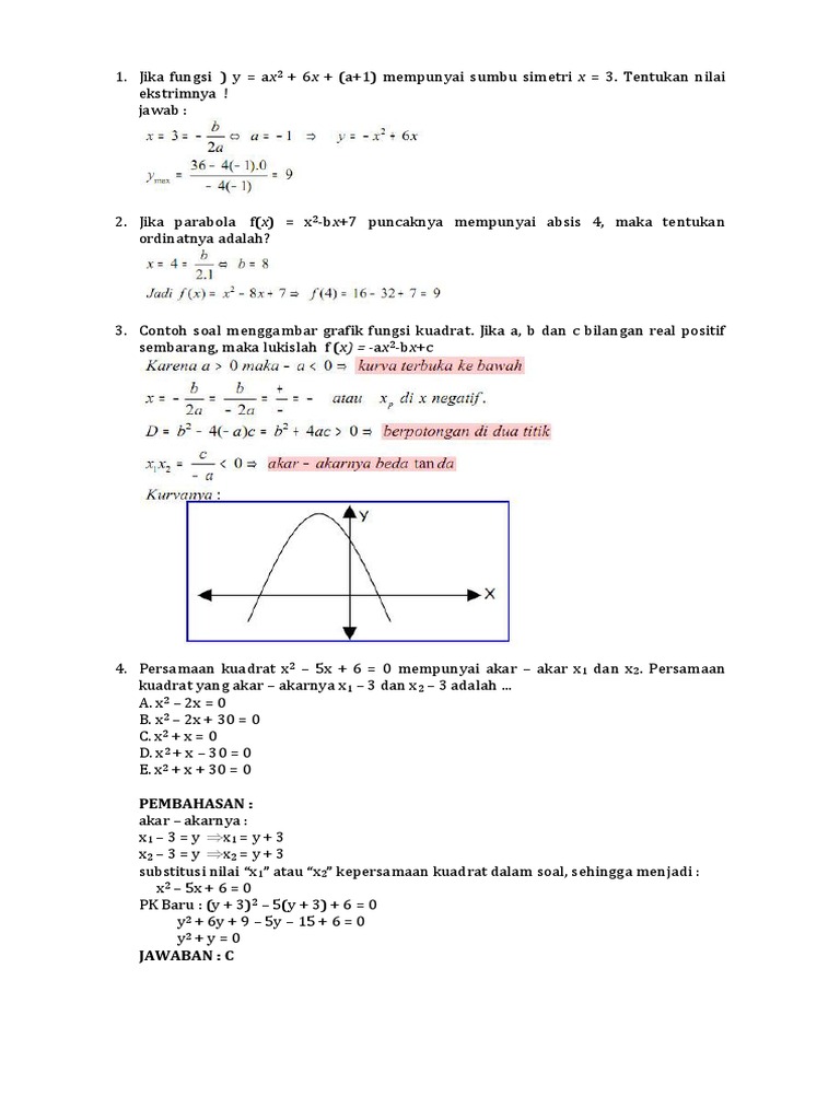 Kumpulan Soal Dan Pembahasan Fungsi Kuadrat
