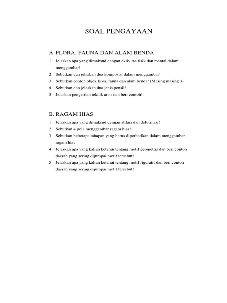 Soal Pengayaan A Flora Fauna Dan Alam Benda Pdf