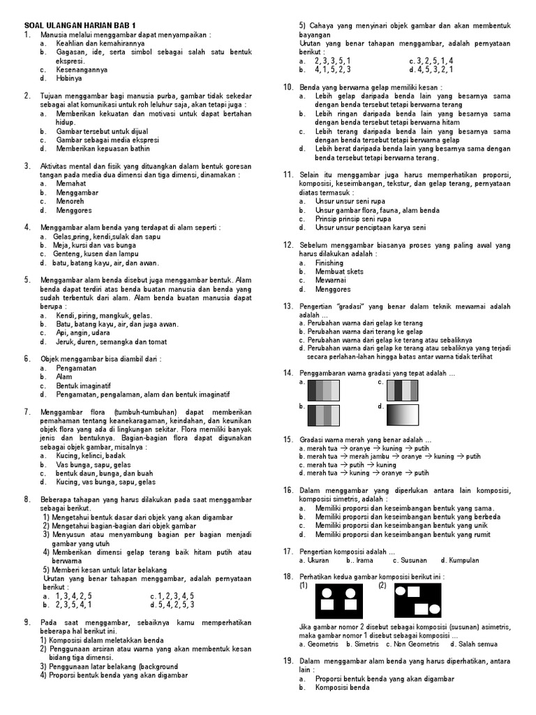 Kisi Kisi Soal Dan Kunci Jawaban Pas Seni Budaya Smp Kelas 7