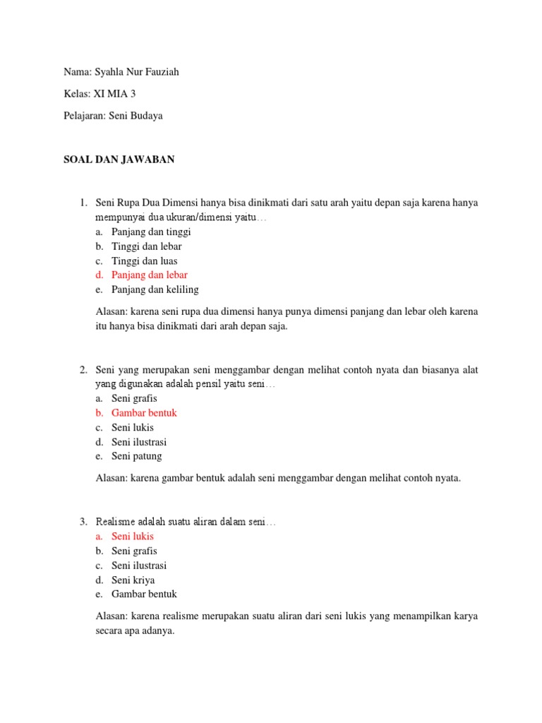 Soal Seni Rupa Dua Dimensi Syahla Xi Mia 3 Docx