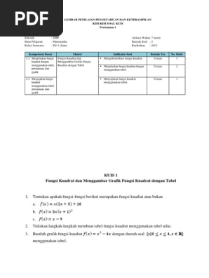 Kisi Kisi Soal Kuis Pedoman Penskoran Fungsi Kuadrat Kelas 9